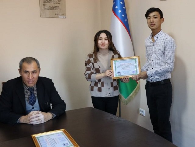 Шундан сўнг тақдирлаш маросими ўтказилди. Яъни, мана шу 3 нафар ғолибга диплом ва эсдалик совғалари топширилди. З.Хожамуратова ўз нутқида ғолиб бўлган талаба-ёшларни табриклаб, келгусида шу каби танловларга янада фаол иштирок этишга чорлаб қолди. Мана шундай мавзуларда танловларни ташкил этиб бориш, олий таълим соҳасида коррупцияга қарши курашиш бўйича олиб борилаётган ишлар самарасини янада орттиришга замин яратиб беради деб ўйлаймиз.