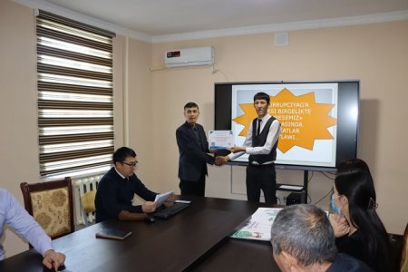 Аввал хабар берганимиздек, 9 декабрь - халқаро коррупцияга қарши кураш куни муносабати билан филиал талаба-ёшлари орасида “Коррупцияга қарши биргаликда курашамиз” шиори остида ҳар хил йўналишда танловлар ташкил этилиб, ғолиблар тақдирланган эди. Бугун “Коррупцияга қарши биргаликда курашамиз” мавзуси асосида ўтказилган плакатлар ҳамда “Коррупция – тараққиёт кушандаси” шиори остидаги видеороликлар танловининг бир қатор ғолиблари диплом ва эсдалик совғлари билан тақдирланди. Ушбу тадбирда Коррупцияга қарши курашиш "комплаенс-назорат" тизимини бошқариш бўлими бош мутахассиси Қ.Жиенбаев, Ахборот хизмати раҳбари З.Хожамуратова ҳамда профилактика инспектори, катта лейтенант Қ.Қайпназаров ва касаба уюшмаси қўмитаси раиси Г.Казахбаева ҳамда тьюторлар иштирок этишди. Тадбирни З.Хожамуратова кириш сўзи билан очиб бериб, ғолибларни табриклаб ўтди. Тадбир давомида ушбу танловларни ташкил этишдан кўзланган асосий мақсадга алоҳида тўхталиб ўтилди ва барча ғолиблар самимий табрикланди. “Коррупцияга қарши биргаликда курашамиз” мавзуси бўйича плакатлар танловининг ғолиблари қуйидагилар: 1-ўрин— бухгалтерия ҳисоби ва аудит (тармоқлар бўйича) йўналишининг 1-босқич 109-гуруҳ талабаси Г.Кудайбергенова; 2-ўрин—2-босқич 202-гуруҳ талабаси С.Китайбеков; 3-ўрин—1-босқич 101-гуруҳ талабаси Г.Ақбергенова. “Коррупция – тараққиёт кушандаси” шиори остидаги видеороликлар танловининг натижалари бўйича: 1-ўрин—2-босқич 210-гуруҳ талабалари; 2-ўрин—3-босқич 311-гуруҳ талабалари; 3-ўрин—1-босқич 109-гуруҳ талабалари. Ушбу гуруҳ тьюторлари А.Баймуратов, Э.Джумабаева, Б.Искаков, Т.Жусипбеков ҳамда Р.Хожаметовларнинг танловда талабаларининг фаол иштирок этишида ҳиссаси бор эканлиги З.Хожамуратова томонидан таъкидлаб ўтилди. Филиалда Коррупцияга қарши кураш куни муносабати билан ташкил этилган танловлар ўз ниҳоясига етди. Барча фаол қатнашганларга миннатдорчилик билдириб қоламиз.