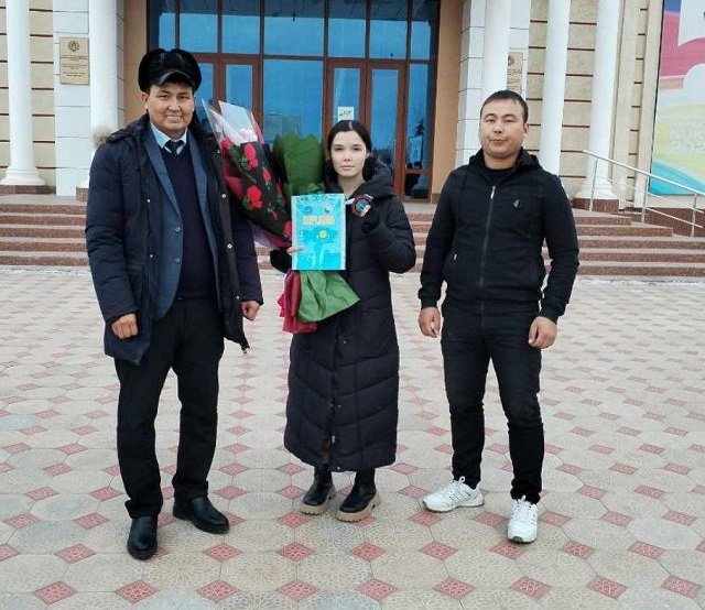Жорий йилнинг 16-19-декабрь кунлари Қозоғистон Республикаси Чимкент шаҳрида “Ўзбек Жанг Санъати” спорт тури бўйича Осиё чемпионати бўлиб ўтди. Қувонарлиси, ушбу бўлиб ўтган мусобақада Самарқанд давлат ветеринария медицинаси, чорвачилик ва биотехнологиялар университети Нукус филиалининг Ветеринария-санитария экспертизаси йўналиши 2-босқич 215-гуруҳ талабаси Серимбетова Камилабану Тенелбаевна 3-ўринни эгаллаб бронза медалини қўлга киритди. Осиё чемпионатида муносиб иштирок этиб, фаҳрли ўринни олишга муввафақ бўлган талабамизни Ёшлар билан ишлаш бўйича декан ўринбосари Е.Сейтмуратов, тьютори Ж.Мамбетниязов ҳамда бир гуруҳ талаба-ёшлар қаҳрамонимизнинг ота-онаси билан биргаликда Нукус шаҳри марказидаги “Манеж” спорт комплекси ёнида тантанали кутиб олишди.