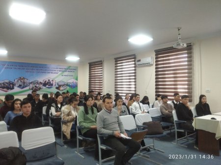 Jumladan, «Iqtisodiyot va gumanitar» fanlar kafedrasi Yoshlar bilan ishlash, ma'naviyat va ma'rifat bo‘limi tomonidan Prezident murojaatnomasining mazmun-mohiyati va ahamiyati talaba-yoshlarga keng tushuntirildi. Yoshlar bilan ishlash bo‘yicha dekan muovini va jismoniy tarbiya o‘qituvchisi hamda tyutorlar boshchiligida talabalar o‘rtasida voleybol, stol tennisi, mini-futbol sport turlari bo‘yicha musobaqalar tashkil etildi.