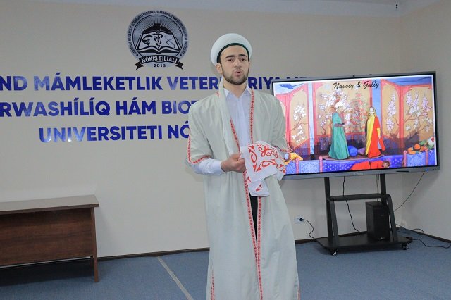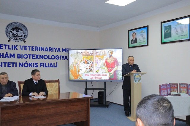 Ma'lumki, har yili buyuk mutaffakir Alisher Navoiy tug‘ilgan qutlug‘ sana ya'ni, 9 fevral yurtimizda keng nishonlanib kelmoqda. Bugun Samarqand davlat veterinariya meditsinasi, chorvachilik va biotexnologiyalar universiteti Nukus filialida Alisher Navoiy tavalludining 582 yilligi hamda Zahiriddin Muhammad Bobur tavalludining 540 yilligi munosabati bilan «Bir asrning ikki javohiri» mavzusida ma'naviy-ma'rifiy kecha o‘tkazildi. Filial direktori Adilbay Esimbetov kechani nutq so‘zlab ochib berdi.