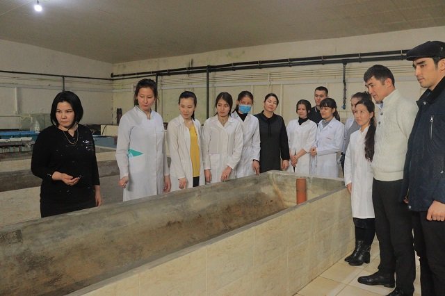 Biz so‘zimizni bejizga amaliyot mavzusidan boshlamadik. Ayni kunlarda filialimizning bitiruvchi bosqich talabalari korxona va fermer xo‘jaliklarida bitiruv oldi amaliyotini o‘tashmoqda. Zooinjeneriya kafedrasi mudirasi A.Toreshova amaliyot rahbarlari Z.Dauletova va B.Kunisovlar hamrohligida Nukus tumanidagi “Nukus agro fish” mas'uliyati cheklangan jamiyatida bo‘lib, amaliyot jarayonini o‘rgandi. Bu yerda Zooinjeneriya (baliqchilik) yo‘nalishi bitiruvchi bosqichida tahsil olayotgan jami 25 nafar talabamiz amaliyot o‘tashmoqda. Tashrif davomida dastlab, amaliyotchilar uchun yaratilgan sharoitlar o‘rganildi va bu yerdagi ish jarayoni bilan yaqindan tanishildi.