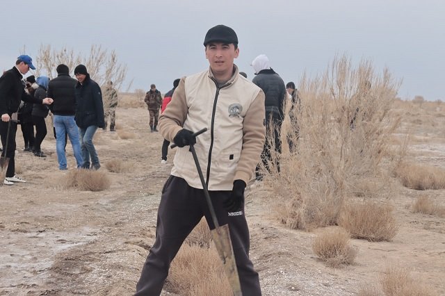—Filial jamoasi bilan Mo‘ynoqqa tashrifimizning bosh maqsadi hamjihatlikda shijoat ko‘rsatib, saksovul nihollarini ekish ishlarida o‘z hissamizni qo‘shishdan iborat.