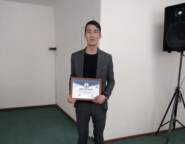 Bu haqda tyutori E.Djumabaeva Axborot xizmatiga xabar berdi. «Naslchilik fermerxo‘jaliklarida tana va g‘unajinlarni jadal o‘stirish va birinchi tuqqan sermahsul sigirlar podasini yaratishning samarali usullarini ishlash” loyihasi bilan ishtirok etgan talabamizga sertifikat hamda 1 500 000 so‘mlik vaucher taqdim etildi.