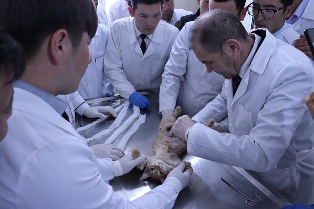 Samarqand davlat veterinariya meditsinasi, chorvachilik va biotexnologiyalar universiteti Nukus filialining veterinariya klinikasida xirurg-veterinar Maxset Sagizbaev tomonidan uy hayvonlariga ko‘plab jarrohlik amaliyoti o‘tkazib kelinmoqda. Talabalarning amaliy dars jarayoni ushbu klinikada olib boriladi. Bugun navbatdagi operatsiya 4 oylik Murzik laqabli mushuk bolasida o‘tkazildi. Unga koprostaz (ich qotishi) tashhisi qo‘yildi. Bu kasallikda ichak va oshqozon faoliyatining buzilishi kuzatiladi. Bunday hollarda ko‘pincha to‘liq ichak tutilishiga olib keladi va kasallikka chalingan hayvonda ichak tizimi normal holatining buzilishi yuzaga kelib, o‘tkir og‘riqlar bilan kechadi. Veterinariya medisinasi yo‘nalishining 3-bosqich 300-guruh talabalari ishtirokida amalga oshirilgan jarrohlik amaliyoti davomida sanitariya-gigiena qoidalariga qat'iy amal qilindi. Amaliy dars doirasida ularga tegishli bilim va ko‘nikmalar berildi. Mushuk bolasining kasalligi va hozirgi holati bo‘yicha batafsil ma'lumotlar berildi.