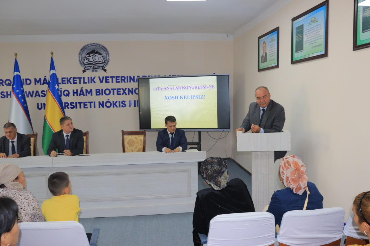 Joriy yilning 13-sentyabr kuni Samarqand davlat veterinariya meditsinasi, chorvachilik va biotexnologiyalar universiteti Nukus filialida 1-kurs talabalari ota-onalari ishtirokida «Ota-onalar kongressi» o’tkazildi.