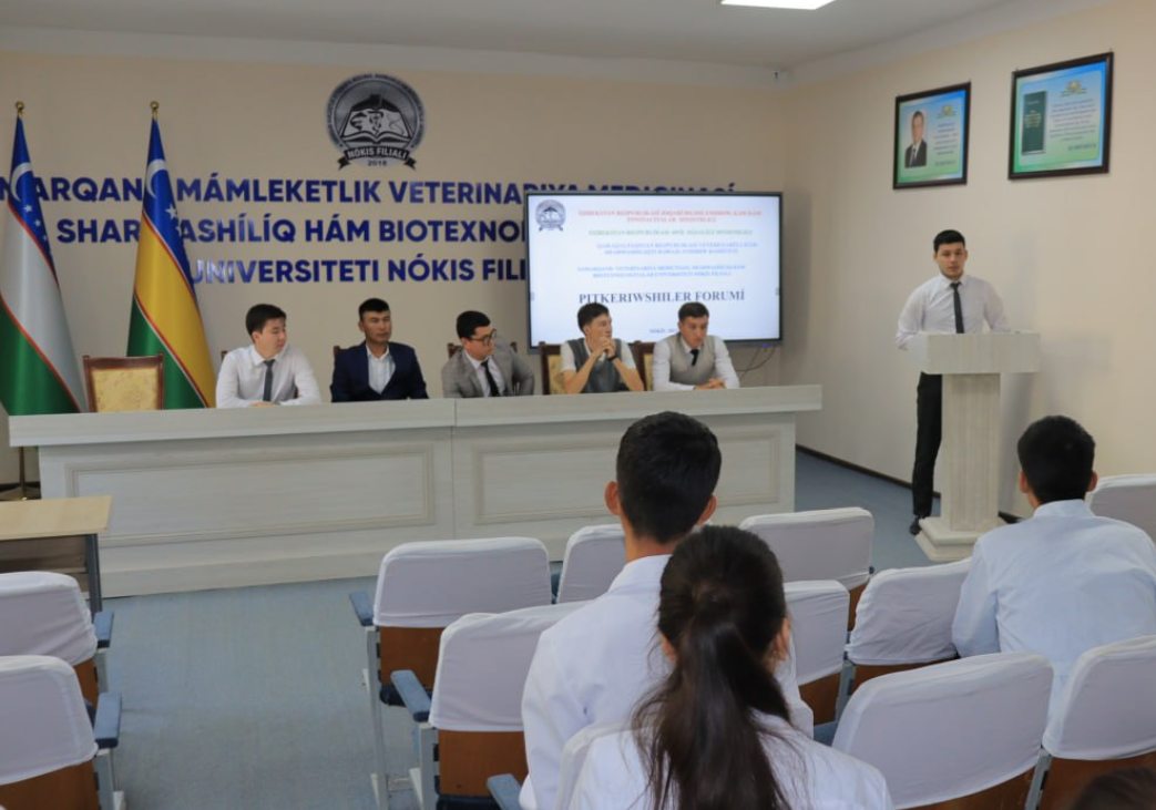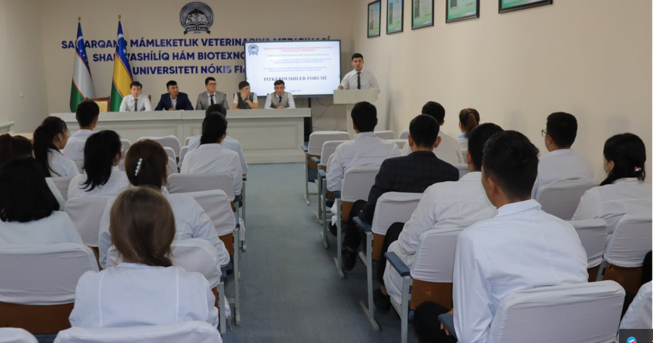 2023 yil 15 sentyabr kuni Samarqand davlat veterinariya meditsinasi, chorvachilik va biotexnologiyalar universiteti Nukus filialida “Bitiruvchilar forumı” tadbiri o'tkazildi. Tadbirni Samarqand mamlakatlik veterinariya tibbiyotsi, sharўashılıq va biotexnologiyalar universiteti Nukus filiali direktori Eshimbetov Adilbay Tlepovich ochib berdi