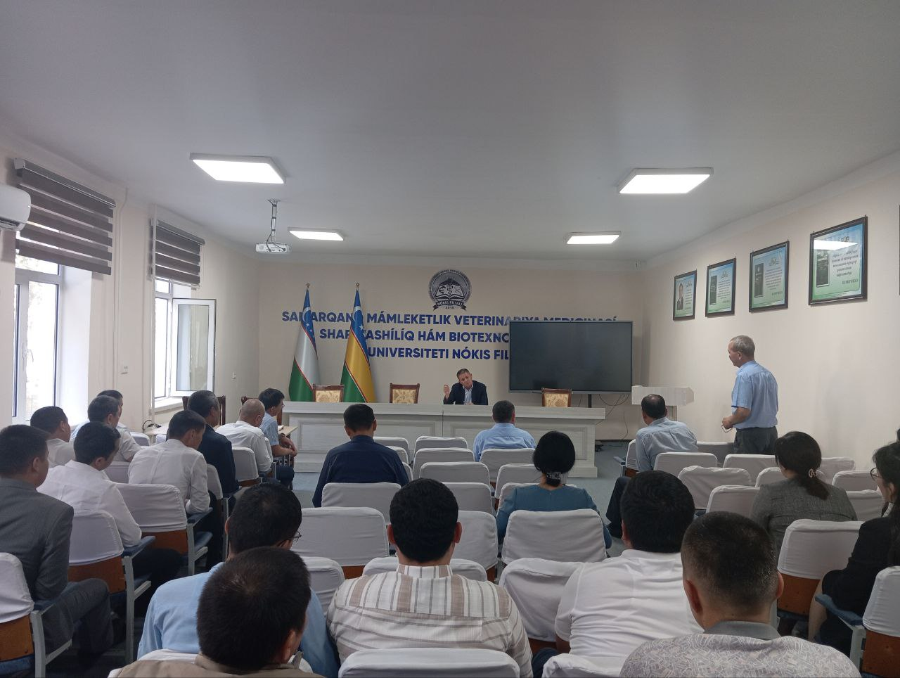 Samarqand davlat veterinariya meditsinasi, chorvachilik va biotexnologiyalar universiteti Nukus filiali direktori Adilbay Esimbetovning 2023 yil 23 sentabrda Ilmiy tadqiqotlar, innovatsiyalar va ilmiy pedagog kadrlar tayyorlash bo’limi xodimlari, fakultet dekani, kafedra mudirlari hamda professor o’qituvchilar bilan uchrashuvi bo’lib o’tdi.