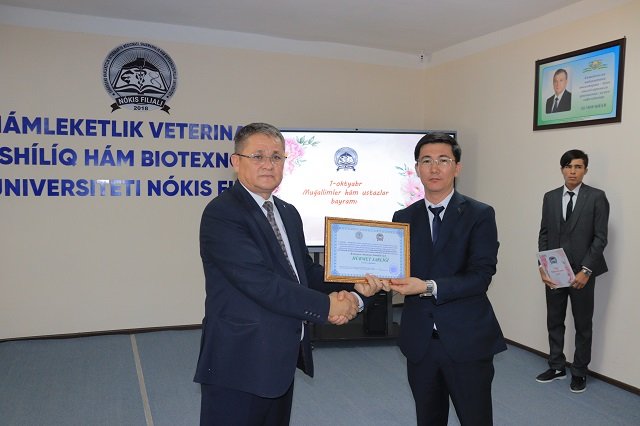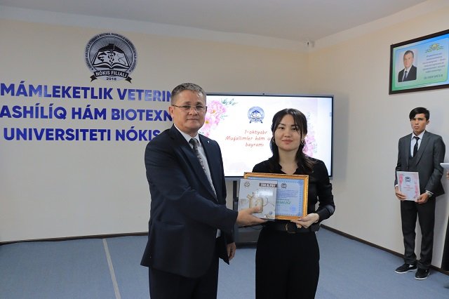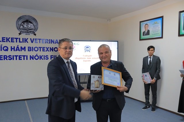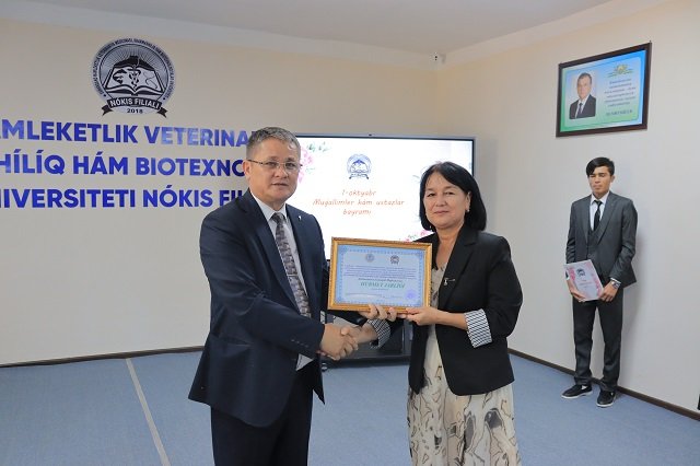 Har yili yurtimizda 1 oktyabr – O‘qituvchi va murabbiylar kuniga bag‘ishlangan bayram tantanalari ko‘tarinki ruhda bo‘lib o‘tadi. Bugun Samarqand davlat veterinariya medisinasi, chorvachilik va biotexnologiyalar universiteti Nukus filialida ushbu sana munosabati bilan tadbir bo‘lib o‘tdi. Ushbu tadbirda filial rahbarityai, professor-o‘qituvchilari va xodimlar ishtirok etishdi. Tadbirni filial direktori Adilbay Esimbetov ochib berdi.