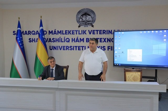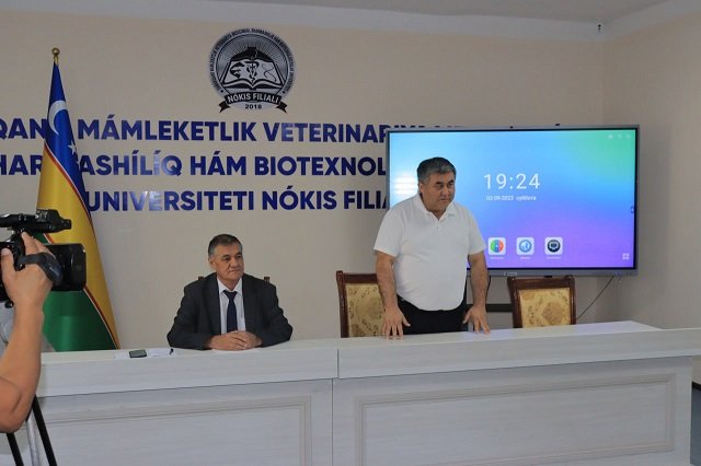 Samarqand davlat veterinariya meditsinasi, chorvachilik va biotexnologiyalar universiteti Nukus filialiga Qoraqalpog‘iston Respublikasi chorvachilik assosiasiyasi rahbari Qutlimurat Panaev tashrif buyurib, talaba-yoshlar bilan muloqot olib bordi. Tadbir boshida filial direktori Adilbay Esimbetov so‘z olib, tashrif buyurgan mehmonni yig‘ilganlarga tanishtirib o‘tdi. Q.Panaev muloqot davomida filialda tahsil olayotgan talaba-yoshlarga veterinariya va chorvachilik sohasi bugun juda zamonaviylashib borayotganligi va shunga yarasha kadrlarga ham talab ortib borayotganligi, chorvachilik tarmog‘ini rivojlantirish bo‘yicha amalga oshirilayotgan ishlar bo‘yicha gapirib o‘tdi.