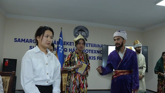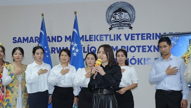Samarqand davlat veterinariya meditsinasi, chorvachilik va biotexnologiyalar universiteti Nukus filialida o‘zbek tiliga davlat tili maqomi berilganligining 34 yilligi munosabati bilan “O‘zbek tili – milliy o‘zligimiz va mustaqil davlatchiligimiz timsoli!” shiori ostida badiiy kecha tashkil etildi.