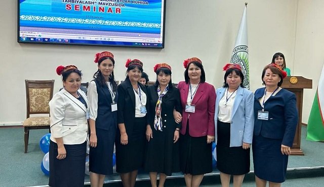 Joriy yilning 27-28-oktabr kunlari Termiz davlat universitetida "Talaba-qizlarni milliy qadriyatlar ruhida tarbiyalash” mavzusida seminar tashkil etildi. Oliy talim, fan va innovatsiyalar vazirligi tashabbusi bilan o‘tkazilgan ushbu seminarda respublikamizdagi 150 oliy ta'lim muassasalaridan Xotin-qizlar masalalari bo‘yicha Kengash raislari ishtirok etishdi. Samarqand davlat veterinariya meditsinasi, chorvachilik va biotexnologiyalar universiteti Nukus filialining Xotin-qizlar masalalari bo‘yicha direktor maslahatchisi G.Kazaxbaeva TerDUda ko‘tarinkilik bilan o‘tkazilgan seminarda qatnashdi. Axborot xizmati bilan bog‘lanib, taassurotlari bilan o‘rtoqlashdi: