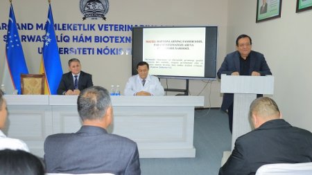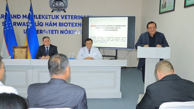 Samarqand davlat veterinariya meditsinasi, chorvachilik va biotexnologiyalar universiteti Nukus filialiga O‘zbekiston Respublikasi Veterinariya va chorvachilikni rivojlantirish davlat qo‘mitasi huzuridagi veterinariya vositalari, ozuqaviy qo‘shimchalar sifatini va muomilasini nazorat qilish bo‘yicha ilmiy markaz direktor o‘rinbosari, veterinariya fanlari doktori, professor N.Yuldashev va ilmiy markaz mutaxassisi, veterinariya fanlari nomzodi, dotsent S.Ashurovlar tashrif buyurib, talaba- yoshlarga ma'ruza o‘tdi. Tashrif avvalida, mehmonlar filial direktori Adilbay Esimbetov bilan o‘quv jarayoni, talabalar sifatli ta'lim olishi uchun yaratilgan sharoitlar, kelgusida ularning bilimlarini yanada mustahkamlash maqsadida hamkorlikda talabalar uchun master klasslarni tashkil etish bo‘yicha muloqot olib borildi.