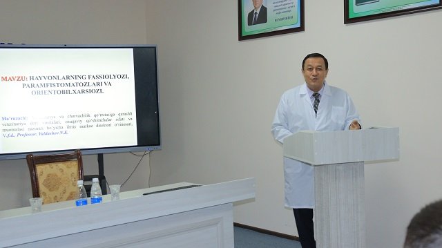 Ta'lim sifatini yanada yaxshilash borasida mulohazalar yuritildi. Shundan so‘ng professor N.Yuldashev va S.Ashurov tomonidan filialning bitiruvchi bosqich talaba-yoshlariga "Hayvonlar Fassiolyozi, paramfistomatozlari, va oreintabilxarsiozi" mavzusida ma'ruza tashkil etildi. Dars davomida tinglovchilarga mavzu bo‘yicha to‘laqonli ma'lumotlar taqdim etildi. Talabalar katta qiziqish bilan tingladi. Ma'ruza savol-javob shaklida davom ettirildi. Ushbu tashkil etilgan ma'ruza orqali bitiruvchi kurs talabalarining o‘z mutaxassisligi bo‘yicha bilimlari yanada mustahkamlandi.