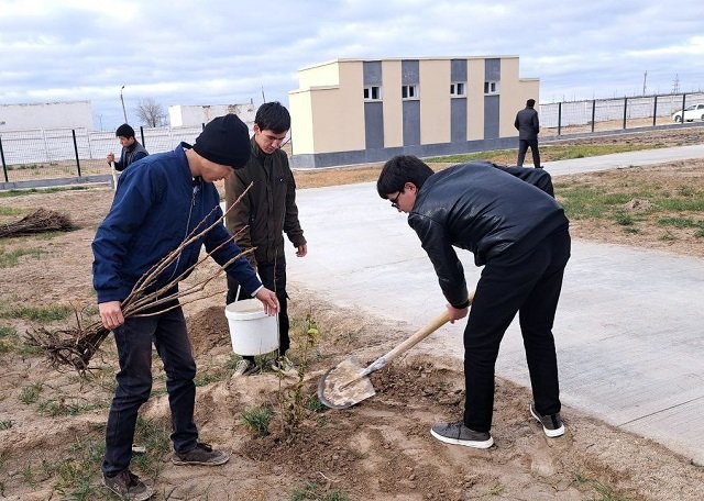 — “Yashil makon” umummilliy loyihasi doirasida yurtimiz hududlarida daraxt ekish ishlari qizg‘in tarzda olib borilmoqda. Biz talaba-yoshlar bilan hamjihatlikda daraxt ko‘chatlarini o‘tkazib, ushbu xayrli ishlar doirasida atrof-muhit ozodaligiga va ko‘kalamzorlashtirish ishlariga o‘z hissamizni qo‘shmoqdamiz—deydi Yoshlar bilan ishlash, ma'naviyat va ma'rifat bo‘limi boshlig‘i A.Seytkamalov. Bugun «Jana bazar» MFY hududida olib borilgan obodonlashtirish ishlari davomida qariyb 500 ga yaqin daraxt ko‘chatlari o‘tkazildi deya ma'lumot bermoqda, bo‘lim boshlig‘i A.Seytkamalov. “Yashil makon” loyihasi davom etadi.