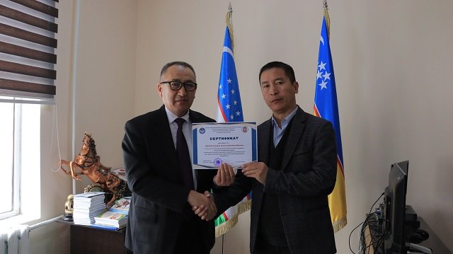 Shuningdek, filialning ilmiy-tadqiqotlar, innovatsiyalar va ilmiy-pedagogik kadrlar tayyorlash bo‘limi boshlig‘i A.Mambetnazarovga Osh Davlat universiteti talaba-yoshlariga onlayn ma'ruza mashg‘ulotlarini olib borganligi uchun universitet rektori nomidan sertifikat topshirdi. Suhbat chog‘ida kelgusida hamkorlikni har tomonlama rivojlantirish bo‘yicha taklif va mulohozalar bildirildi. Qirg'izistonlik professor shu hafta mobaynida filial talaba-yoshlariga 24 soat dars mashg‘ulotlarini olib boradi.