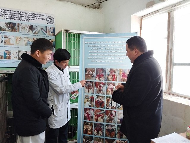 Samarqand davlat veterinariya meditsinasi, chorvachilik va biotexnologiyalar universiteti Nukus filiali "Veterinariya meditsinasi va oziq-ovqat xavfsizligi" kafedrasi tayanch doktoranti Ernazarov Daniyor Alisherovichning "Qoraqalpog‘iston Respublikasi sharoitida uchraydigan qoramollar barmoqlararo dermatitlarining farmakoterapiyasi" mavzusidagi ilmiy tadqiqot ishining aprobatsiyasi o‘tkazildi. Ilmiy rahbar: v.f. d, professor Niyozov Hakim Bakayevich.