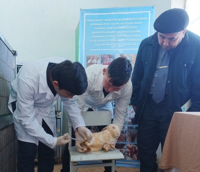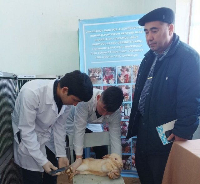 Filialning vivariysida o‘tkazilgan aprobatsiya jarayonida quyonlar bilan tajribalar olib borildi. Shuningdek tayanch doktorant D.Ernazarov ushbu mavzuning dolzarbligi hamda Qoraqalpog‘iston Respublikasidagi chorvachilik fermer xo‘jaliklarida olib borilayotgan ilmiy tadqiqot ishlari bo‘yicha maʼlumotlarni berib o‘tdi.