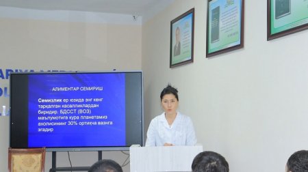 Ko‘pchilik insonlar ortiqcha vazn turli kasalliklarni keltirib chiqarishini bilmaydilar. Aslida semizlik qanday kasallik va uning kelib chiqish sabablari, tashxis qo‘yish va davolash singari mavzular doirasida talaba-yoshlarga atroflicha ma'lumotlar berildi. Semizlik va uning asoratlari bo‘yicha statistik ma'lumotlar aytib o‘tildi. Talabalar semizlikning birlamchi, gipotalamo va endokrin turlari, uning salbiy ta'sirlari, ushbu kasallikni aniqlash va tibbiyotda semizlikni davolashning qanday zamonaviy usullari bor ekanligi bo‘yicha tushunchalarga ega bo‘lishdi. Yig‘ilganlarga sog‘lom turmush tarziga rioya etish bo‘yicha tegishli tavsiyalar berib o‘tildi.