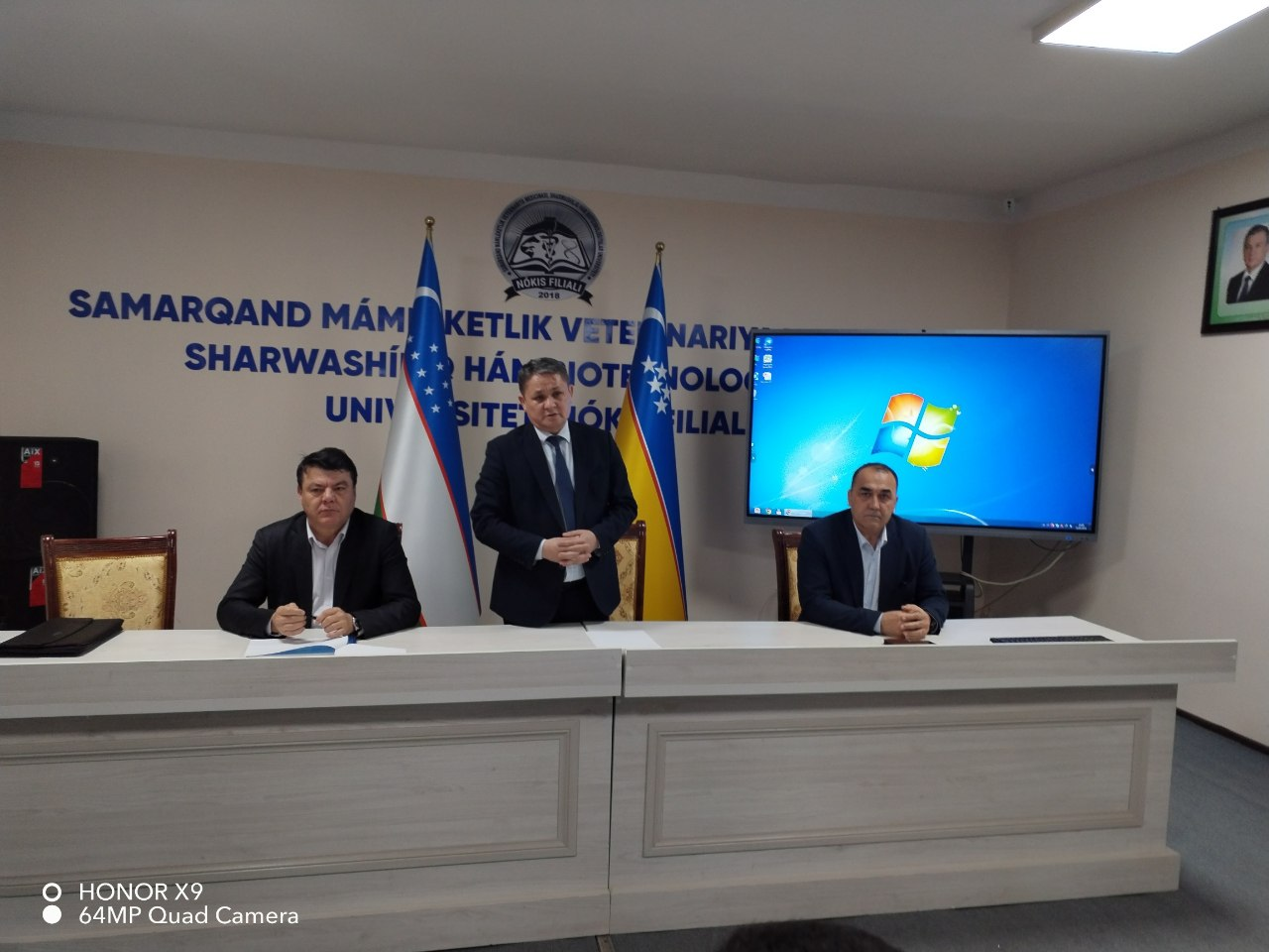 Majlisni filial direktori A.Esimbetov ochib berdi va kun tartibidagi masalalar bo’yicha universitet xodimlarigakelgan mexmonlar bilan tanishtirib o’tdi.Shundan so’ng Ózbekiston respublikasi Veterinariya va chorvachilikni rivojlantirish qomitasi korrupsiyaga qarshi kurashish kompleans nazorat tizimini boshqarish boʻlimi boshliǵi K.Kariyevga sóz berildi. K.Kariyev óz sózida Ózbekiston bóyicha 3 ta soxa Bank tizimida, Oliy tálim va Meditsina tizimlarida korrupsiyaviy xolatlarning júda kóp sodir bolayatganligi, Jinoyat kodeksining 211 modasi (Pora berish) da kórsatilgan jazoni yanada oǵirlashtirish kerakligi va universitet xodimlari korrupsiyaviy xolat aniqlansa filialning korrupsiyaga qarshi kurashish kompleans nazorat tizimini boshqarish mutaxasisiga yoki ózining uyali aloqa telefoniga aniq faktlar bilan xabar berishi kerak ekanligini aytib ótti.