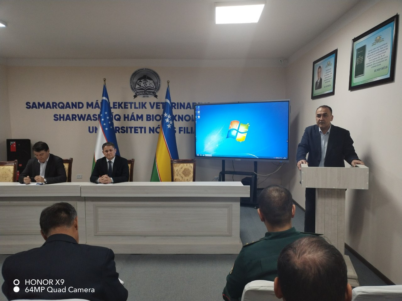 Kun tartibidagi masala bo’yicha Ózbekiston respublikasi Veterinariya va chorvachilikni rivojlantirish qomitasi kompleans nazorat tizimini boshqarish boʻlimi boshliǵi A.Kambarov tomonidan filialda korrupsiyaviy xolat aniqlansa platformada yoritib borish, yangi ishga qabul qilinayotgan xodimlarni suxbattan ótkazish jarayonini oudio-videolarda aks ettirilgan xolda joylashtirib borish kerakligini va yangi xodimlarni kasbiy tayorgarlik oquvlarida oqitish kerakligini, Shuningdek filial xodimlariga korrupsiyaga oid tushintirishlar kórsatib ótti.