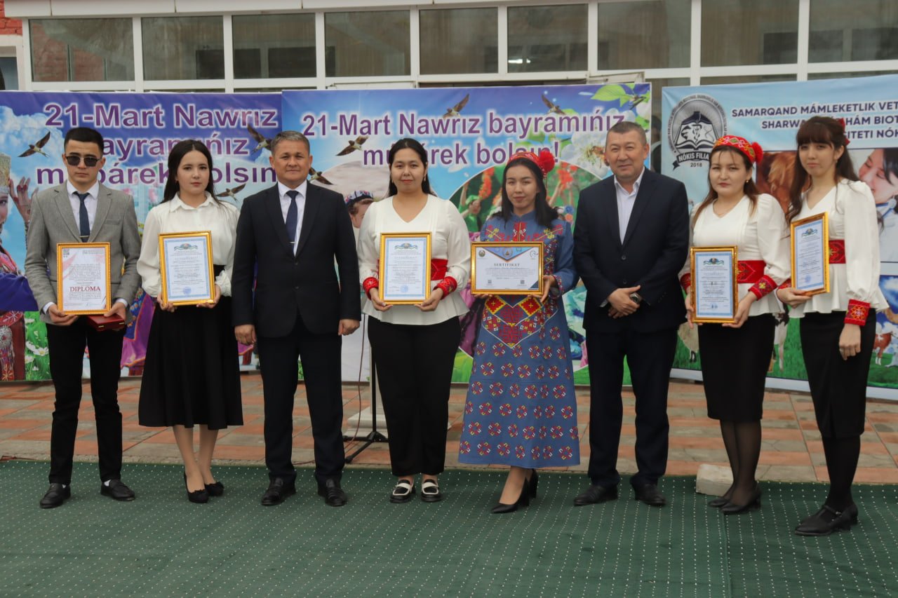 Azaldan xalqimizga ruhiy-ma'naviy quvvat berib kelgan, barcha birdek intiqlik bilan kutib, katta shodiyona ila qarshi oladigan, ko‘nglimiz gavhari Navro‘z ayyomining bayramona kayfiyati hali ham yurtimiz bo‘ylab kezib yuribdi. Jumladan, bugun Samarqand davlat veterinariya meditsinasi, chorvachilik va biotexnologiyalar universiteti Nukus filialida "Olam nurga to'lsin sen bilan, Navro‘z" shiori ostida bayram kechasi yuqori saviyada tashkil etildi. Dastlab, tadbir doirasida milliy taomlar ko‘rgazmasi tashkil etilib, dasturxonga milliy taomlar tortildi.