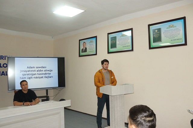 Tadbir davomida odam savdosiga qarshi kurash bo‘yicha Respublika «Istiqbolli avlod» nodavlat notijorat tashkiloti yuristi A.Kudaybergenov va mutaxassisi M.Boranbaevlar so‘zga chiqib, odam savdosiga qarshi kurash masalasi bo‘yicha qonunchiligimizdagi huquqiy hujjatlar va ularning mazmun-mohiyati, ushbu illat oqibatida har yili dunyo bo‘ylab jabrlanayotganlarning ayanchli qismati, hamyurtlarimizni aldov yo‘li bilan xorijga sotib yuborish holatlariga qarshi samarali ishlar olib borilayotganligi bo‘yicha ma'lumotlarni berib o‘tdi.