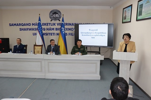 Joriy yilning 4 aprel kuni Samarqand davlat veterinariya meditsinasi, chorvachilik va biotexnologiyalar universiteti Nukus filialida Qoraqalpog‘iston Respublikasi Konstitutsiyasi qabul qilinganligiga 31 yil to‘lishi munosabati bilan tadbir bo‘lib o‘tdi. Tadbir boshida O‘zbekiston va Qoraqalpog‘iston Respublikalarining davlat madhiyalari yangradi.