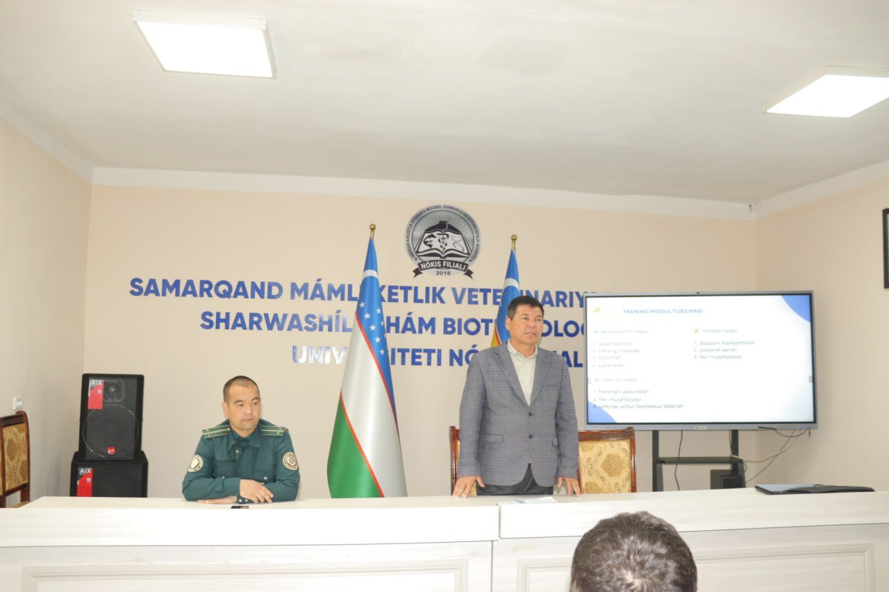 Samarqand davlat veterinariya meditsinasi, chorvachilik va biotexnologiyalar universiteti Nukus filialida «Noiqtisodiy yo‘nalishdagi oliy o‘quv yurtlarida yoshlarning moliyaviy savodxonligini oshirish» mavzusida uchrashuv bo‘lib o‘tdi. Ushbu tadbirda Berdaq nomidagi Qoraqalpoq davlat universiteti moliya kafedrasining dotsenti A.Juzbaev, «Iqtisodiyat» fakultetining 3-bosqich talabalari U.Kamalov, O.Smaylov, O.Radjabova, X.Jumamuratova, filial profilaktika inspektori Q.Qayipnazarov, talabalar hamda texnikum o‘quvchilari qatnashdi. Yoshlar bilan ishlash, ma'naviyat va ma'rifat bo‘limi boshlig‘i A.Seytkamalov tadbirni ochib berdi va olib bordi.