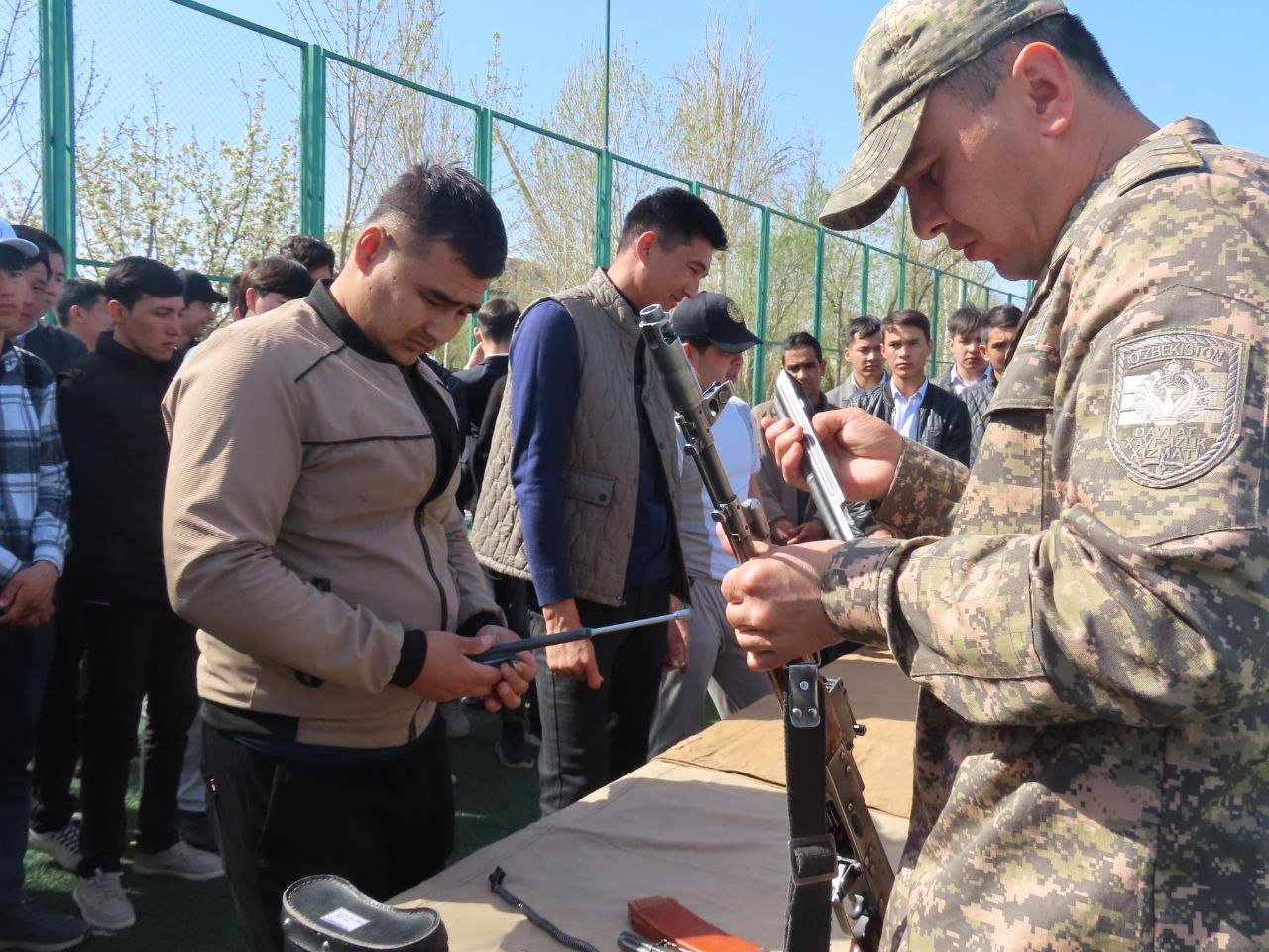 Direktor maslahatchisi Z.Saparbayev, Yoshlar bilan ishlash, ma'naviyat va ma'rifat bo‘limi boshlig‘i A.Seytkamalov, Yoshlar bilan ishlash bo‘yicha dekan muovini E.Seytmuratov hamrohligida tashrif buyurgan talaba-yoshlar dastlab harbiylar uchun yaratilgan qulayliklar bilan yaqindan tanishdi. Jumladan, o‘quv xonalari, kutubxona va ma'naviy dam olish xonalarida yaratilgan sharoitlar bilan tanishdi. Tashrif davomida harbiylar tomonidan qurollarni qismlarga ajratish va yig‘ish kabi amaliy mashg‘ulotlar o‘tkazilib, talabalarga ko‘rsatib berildi.