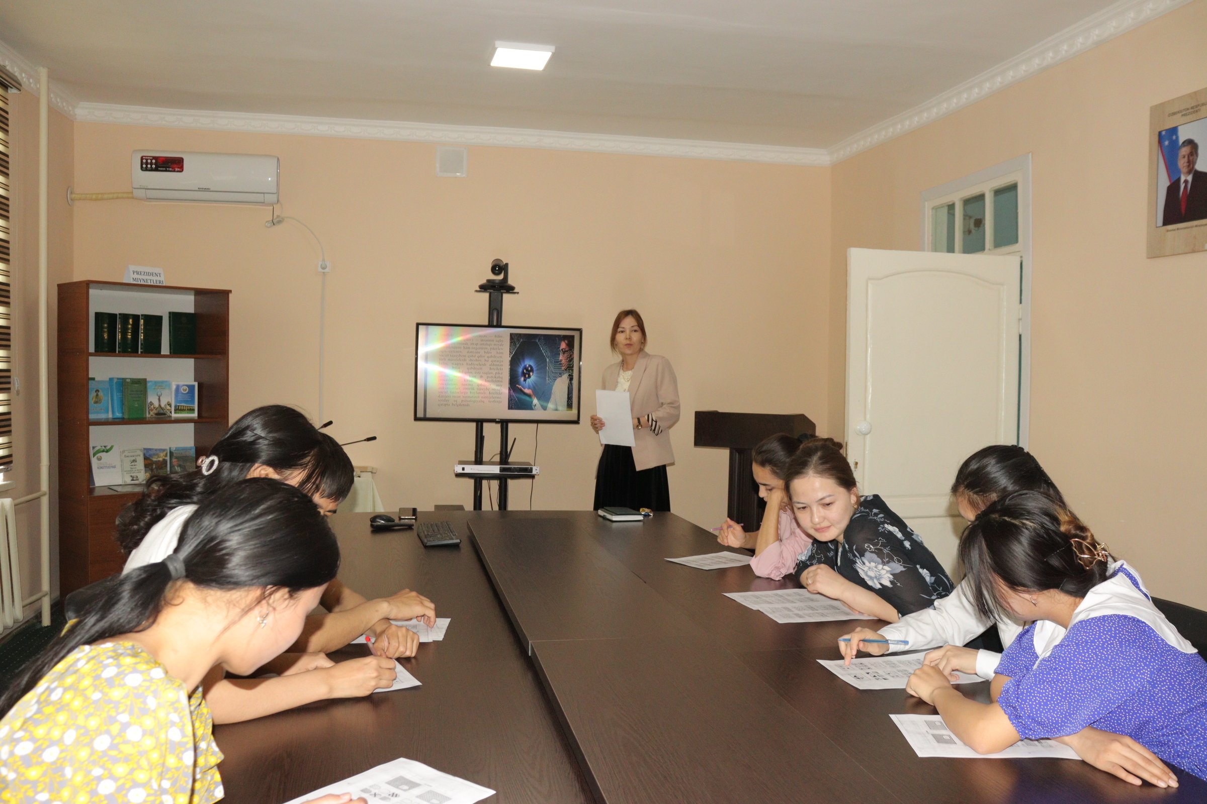 “Intellektual haftalik” doirasida filial psixologi M.Allamuratova tomonidan "Talabalarning intellektual salohiyatini rivojlanitirish" mavzusida seminar trening o‘tkazildi. Seminar davomida qiziqarli pisxologik mashg‘ulotlar olib borildi. Seminar mavzusi bo‘yicha ishtirokchilarga atroflicha tushunchalar berildi. Talaba-yoshlarga ijobiy kayfiyat ulashildi.