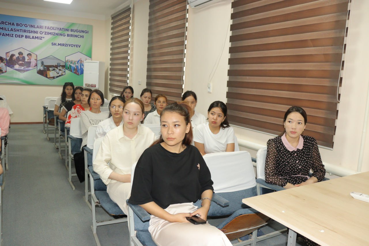 Samarqand davlat veterinariya meditsinasi, chorvachilik va biotexnologiyalar universiteti Nukus filiali talaba qizlari va texnikum o‘quvchilari ishtirokida “Xotin-qizlarning ijtimoiy siyosiy faolligini oshirish, gender tenglik masalalari va gender zo‘ravonlik bilan kurashish” mavzusida davra suhbati tashkil etildi.