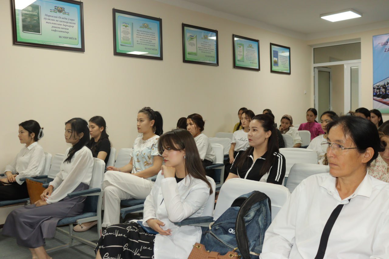 A.Namenova o‘z nutqida ayollarga nisbatan zo‘ravonlik muammosini bartaraf etish borasida amalga oshirilib kelinayotgan ishlar, ushbu muammo har qanday jamiyat uchun dolzarb bo‘lib kelayotganligi va Xotin-qizlar huquqlarini poymol qilish bilan bog‘liq jinoyatlar jazosiz qolmasligini qayd etib o‘tdi. Shuningdek, yig‘ilganlarga oilaviy zo‘ravonlik va uning salbiy oqibatlari, joylarda turli targ‘ibot tadbirlari va tushuntirish ishlari olib borilishiga qaramay hali-hanuz ayollarga nisbatan tazyiq va zo‘ravonliklar sodir etilayotganligi juda achinarli holat ekanligi haqida gapirib berdi. Mutaxassis statistik ma'lumotlarni keltirib, talaba-qizlarga aniq tushunchalarni berdi. Mana shunday zo‘ravonliklarning oldini qanday qilib olish mumkinligi, shu kabi salbiy holatlarni o‘rganib ijobiy yechim topish zarurligini ta'kidlab o‘tdi. Qizlar bilan olib borilgan muloqot davomida mavzu doirasida masalalar muhokama qilindi. Talabalar o‘zlarini qiziqtirgan savollar bilan mutaxassisga murojaat qilib, qoniqarli javoblarni olishdi. Tadbir davomida gender tenglik masalalari va ayollarga bog‘liq zo‘ravonlikni bartaraf qilish mavzusiga alohida urg‘u berildi.