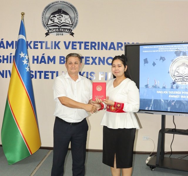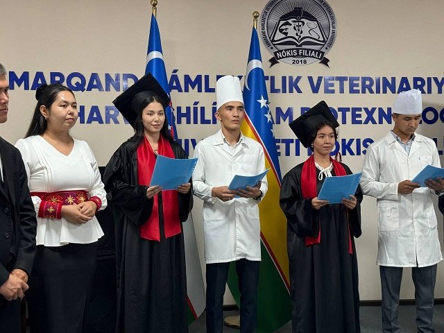 Joriy yilning 20-iyul kuni Samarqand davlat veterinariya meditsinasi, chorvachilik va biotexnologiyalar universiteti Nukus filialida “Oq yo‘l sizga, bitiruvchi!” shiori ostida 2023-2024 o‘quv yili bitiruvchilariga diplom topshirish marosimi bo‘lib o‘tdi. Tadbirda filial rahbariyati, Qoraqalpog‘iston Respublikasi Veterinariya va chorvachilikni rivojlantirish qo‘mitasi rahbariyati, ota-onalar, professor-o‘qituvchilar va bitiruvchi talaba-yoshlar ishtirok etishdi.