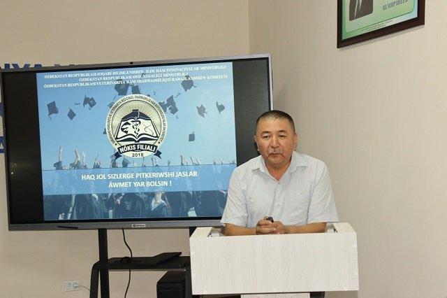 Filial direktori, professor Adilbay Esimbetov so‘zga chiqib, yangi marralar sari qadam tashlayotgan bitiruvchi yoshlarni samimiy qutlab, ularning 4 yil mobaynida qo‘lga kiritgan yutuqlarini g‘urur bilan tilga olib, alohida ta'kidlab o‘tdi. —Mana bugun barchangiz katta hayot, yangi imkoniyatlar sari qadam qo‘ymoqdasiz—deydi direktor A.Esimbetov—sizlarga aytar o‘gitim, hamiysha o‘z bilimingizga tayaning, yuksak intellekt, zamonaviy fikrlash va yetuk bilim sizning kelajakdagi imidjingizni yaratib beradi.