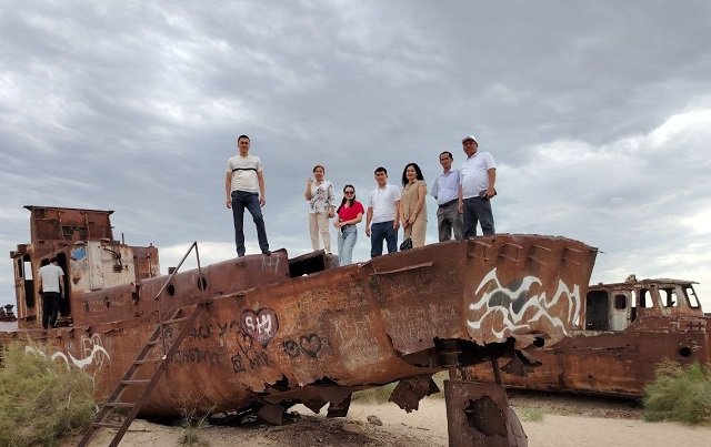 Birinchi manzil ochiq osmon ostidagi kemalar muzeyi majmuasi bo‘ldi. «Kemalar qabristoni»ga tashrif davomida u yerdagi 15 ga yaqin kemalar ko‘rgazmasini o‘z ko‘zlari bilan ko‘rib, ushbu zanglagan kemalar Orol fojiasini chin ma'noda tasvirlab beradi degan ta'rif bekorga berilmaganiga guvoh bo‘lishdi. Mo‘ynoqqa tashrif buyuradigan ko‘plab sayohlarda qaynoq taassurotlarni qoldiradigan ushbu manzildan so‘ng, filial jamoasi sayyohlar orasida mashhur bo‘lgan yana bir manzil tomon yo‘l olishdi.