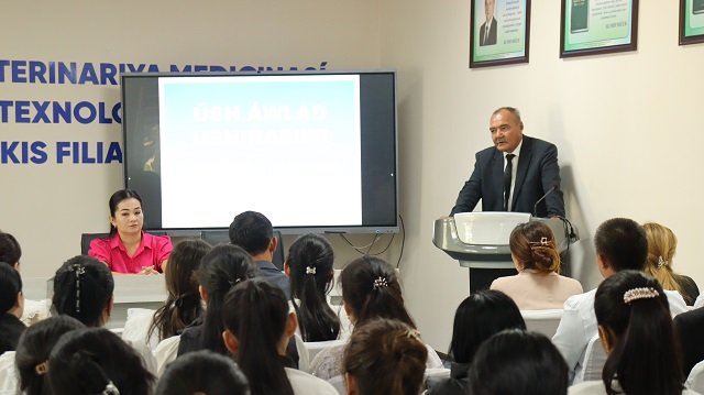 Joriy yilning 17-sentyabr kuni Samarqand davlat veterinariya meditsinasi, chorvachilik va biotexnologiyalar universiteti Nukus filialida joriy 2024-2025-o‘quv yilida olis viloyatlardan va tumanlardan kelib, yuqori ball bilan davlat granti asosida o‘qishga kirgan talabalar bilan ochiq muloqot olib borildi. «Veterinariya va zooinjeneriya» fakulteti dekani Amaniyaz Kaniyazov tadbirni kirish so‘zi bilan ochib berib, joriy yilda talaba bo‘lish baxtiga erishgan yoshlarni samimiy muborakbod etdi.