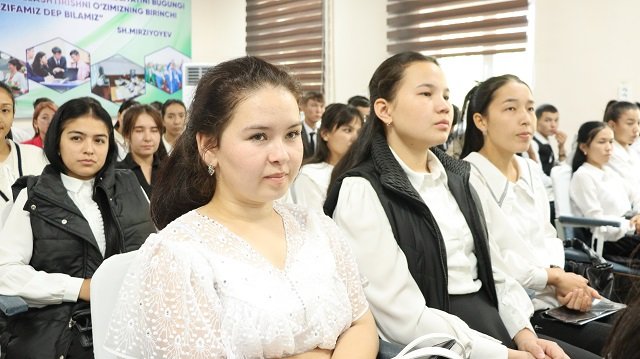 Yuqori ball bilan davlat granti asosida o‘qishga kirgan talabalar bilan ochiq muloqot olib borildi