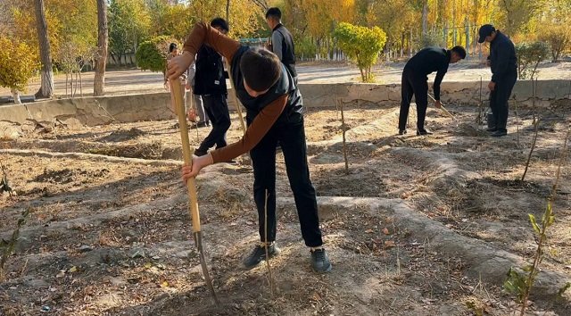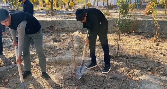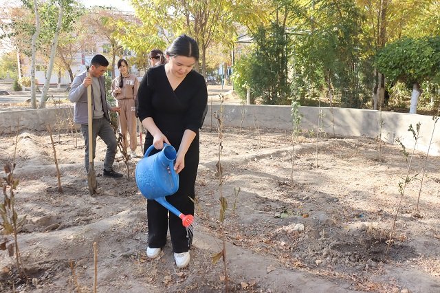 Bugun ham «Yashil makon» umummilliy loyihasi doirasida hashar o‘tkazilib, barcha ko‘ngilli talaba-yoshlar tomonidan uyushqoqlik bilan 200 tupga yaqin mevali va manzarali daraxt ko‘chatlari o‘tqazildi. Shuningdek, xushkayfiyat bilan hamjihatlikda ariqlar va yo‘laklar chiqindilardan tozalandi, talaba-qizlar atrofni supirib sidirishdi, to‘kilgan barglarni tozalashdi, ko‘chatlarni suv bilan sug‘orishdi. Shu tarzda yoshlar faollik ko‘rsatib, filial hududida yashil maydon barpo etilishiga o‘zlarining ezgu hissalarini qo‘shdilar.