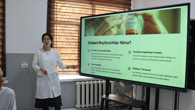 «Veterinariya diagnostikasi va oziq-ovqat xavfsizligi» kafedrasida «Yosh bioximiklar» to‘garagi a'zolari uchun qiziqarli va bilimga boy dars mashg‘uloti tashkil etildi. Kafedraning assistent-o‘qituvchisi B.Muratbayeva tomonidan «Ozuqani kompleks boyituvchilar» mavzusida o‘tkazilgan dars talabalar uchun katta ahamiyatga ega bo‘ldi. Mashg‘ulotlar davomida talabalarga oziq-ovqatni boyitish, undagi foydali komponentlarning ahamiyati va inson salomatligiga bo‘lgan ta'siri haqida keng tushunchalar berildi.