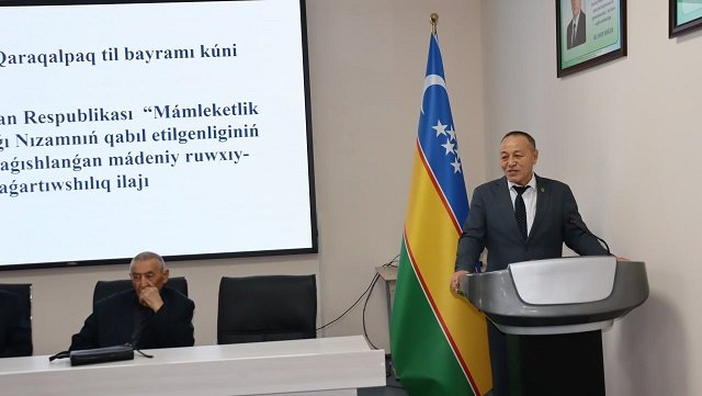 —Qoraqalpoq tili — nafaqat o‘tmishning, balki kelajakning tildir. Bu til orqali xalqimizning ma'naviy va madaniy merosi asrab qolinadi—deydi Qoraqalpog‘iston xalq yozuvchisi, filologiya fanlari nomzodi A.Abdiyev. Talaba-yoshlarga Ona tilimiz xalqimizning o‘tgan asrlar davomidagi g‘oyalari, qadriyatlari va madaniy merosini o‘z ichiga olib, ularni kelajak avlodlarga yetkazish uchun muhim vosita bo‘lib xizmat qilishi, tilimiz xalqimizning yuksak ma'naviy qadriyatlari va madaniy boyligini saqlash bilan birga, uning kelajakdagi rivoji uchun mustahkam asos yaratishi haqida tushunchalar berib o‘tildi. Shuningdek, tadbir ishtirokchilariga Qoraqalpoq tili tarixi haqida qiziqarli faktlar taqdim etildi.