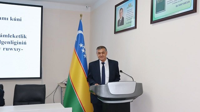 U o‘z nutqida qoraqalpoq tilining davlat tili sifatidagi maqomining tarixiy ahamiyatiga alohida urg‘u berib, bu voqea xalqimizning o‘zligini anglashi, milliy qadriyatlarimiz va merosimizni asrash, uni kelajak avlodlarga yetkazish yo‘lidagi muhim qadam bo‘lganligi haqida so‘z yuritdi.