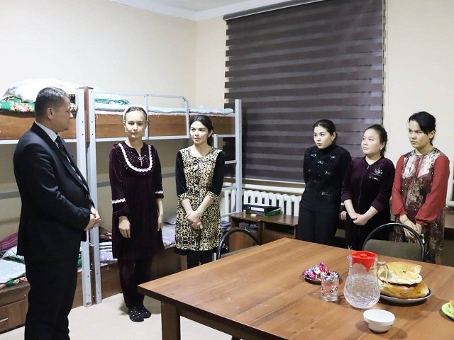 Direktor A.Esimbetov qishki ta'tildan qaytgan talabalar bilan samimiy suhbatlashib, ulardan dam olish kunlarini qanday o‘tkazganliklari va yotoqxona sharoitlari bilan bog‘liq muammolar yuzaga kelgan yoki kelmaganligi haqida so‘radi.