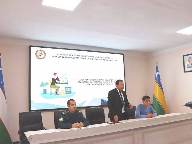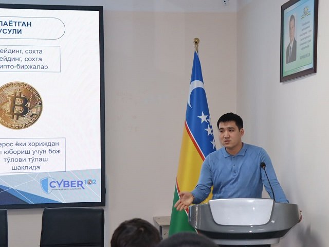 Tadbir ishtirokchilariga Qoraqalpog‘iston Respublikasi Ichki ishlar vazirligining tezkor-qidiruv xizmati kiberxavfsizlik bo‘limi xodimi leytenant J.Qdirbaev tomonidan kiberxavfsizlik masalalariga oid muhim tushunchalar taqdim etdi. Kiberxavfsizlikning ahamiyati va uning zamonaviy oliy ta'lim muassasalarida, ayniqsa, ilmiy tadqiqot va ta'lim jarayonlaridagi o‘rni xususida atroflicha ma'lumotlar berildi.