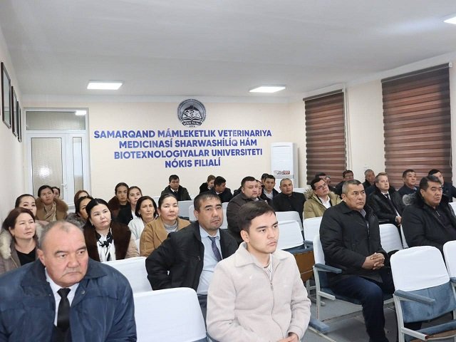Joriy yilning 23-yanvar kuni Samarqand davlat veterinariya meditsinasi, chorvachilik va biotexnologiyalar universiteti Nukus filialida professor-o‘qituvchilar va xodimlar uchun kiberxavfsizlik bo‘yicha uchrashuv tashkil etildi. Mazkur tadbirni Yoshlar masalalari va ma'naviy-ma'rifiy ishlar bo‘yicha direktor o‘rinbosari X.Abdijaliev kirish so‘zi bilan ochib berdi va olib bordi.