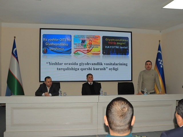 Barchamizga ma'lumki, joriy yilning 1-fevral sanasidan 1-mart sanasiga qadar mamlakatimizda keng ko‘lamli “Yoshlar orasida giyohvandlik vositalari va psixotrop moddalar tarqalishining oldini olish oyligi” doirasida turli tadbirlar tashkil etilmoqda. Bu tadbirlar yoshlar orasida giyohvandlik va psixotrop moddalarning tarqalishining oldini olish, ularning zararlari haqida aniq tushunchalar berish va ularning salomatligi uchun xavf tug‘diradigan omillarga qarshi kurashishga yo‘naltirilgan.