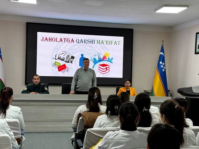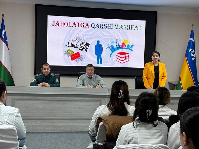 Samarqand davlat veterinariya meditsinasi, chorvachilik va biotexnologiyalar universiteti Nukus filialida xotin-qizlar maslahat kengashining tashabbusi bilan "Jaholatga qarshi ma'rifat" mavzusi doirasida davra suhbati o‘tkazildi. Tadbirda filialning Xotin-qizlar masalalari bo‘yicha direktor maslahatchisi Z.Dawletova, Yoshlar bilan ishlash bo‘yicha dekan o‘rinbosari E.Seytmuratov va filial profilaktika inspektori, kapitan Q.Qayipnazarov ishtirok etdilar.