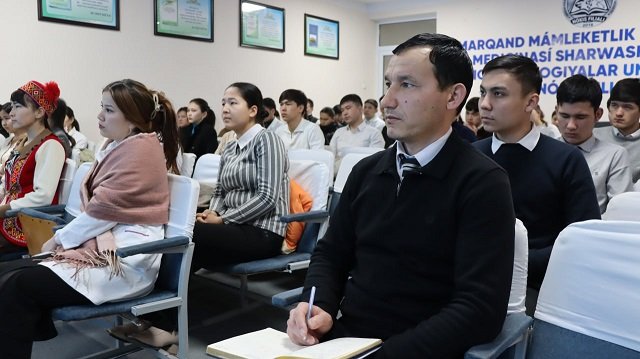 Samarqand davlat veterinariya meditsinası, chorvachilik va biotexnologiyalar universiteti Nukus filialida talaba-yoshlar uchun "Siyosiy-ma'rifat soati" tashkil etildi. Ushbu tadbir, nafaqat talabalarning siyosiy ma'rifati va dunyoqarashini shakllantirish, balki jamiyatda ro‘y berayotgan islohotlar va yangilanishlarga bo‘lgan e'tiborini oshirish maqsadida o‘tkazildi.Filial direktori A.Esimbetov tadbirda so‘nggi kunlarda mamlakatimizda amalga oshirilayotgan islohotlar va yangilanishlar haqida batafsil ma'lumot berdi. U talabalarga davlatimizning bugungi kundagi siyosiy, iqtisodiy va ijtimoiy jarayonlarini tushuntirib, yosh avlodni bu borada ongli va faol fuqarolar sifatida tarbiyalash zarurligini ta'kidladi. Tadbirda asosiy mavzu sifatida "Ma'rifatli ayol – jamiyat tarbiyachisi" masalasi ko‘tarildi.