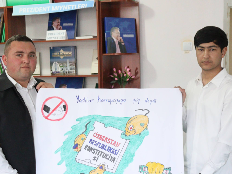 Xususan, ular tomonidan mazkur mavzuga bag‘ishlab plakatlar tayyorlandi hamda korrupsiyaga qarshi mazmundagi rasmlar chizildi. Ushbu ijodiy ishlar orqali yoshlar halollik, adolat va shaffoflik g‘oyalarini yorqin aks ettirib, korrupsiyaga qarshi kurashda o‘zlarining befarq emasligini namoyon etdilar.